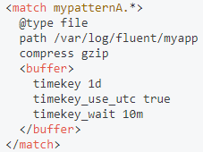 path로 경로 지정을 해주고, gzip 으로 압축 저장을 한다. buffer 태그는 말그대로 지속적으로 들어오는 출력을 임시 저장할 버퍼이다. buffer 태그는 한 플러그인에 한번만 설정할 수 있다. |