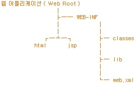 - /WEB-INF/lib/ - 이 디렉토리에는 웹어플리케이션에서 사용하는 자바 클래스파일을 포함하는 JAR 파일들이 위치한다. 외부 클래스 라이브러리나 JDBC 드라이버 같은 것들이다.