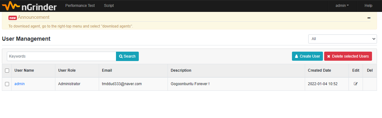 - 여기서 컨트롤러란 유저, 스크립트, 에이전트를 관리하고, 테스트 분석, 통계를 해주는 모듈