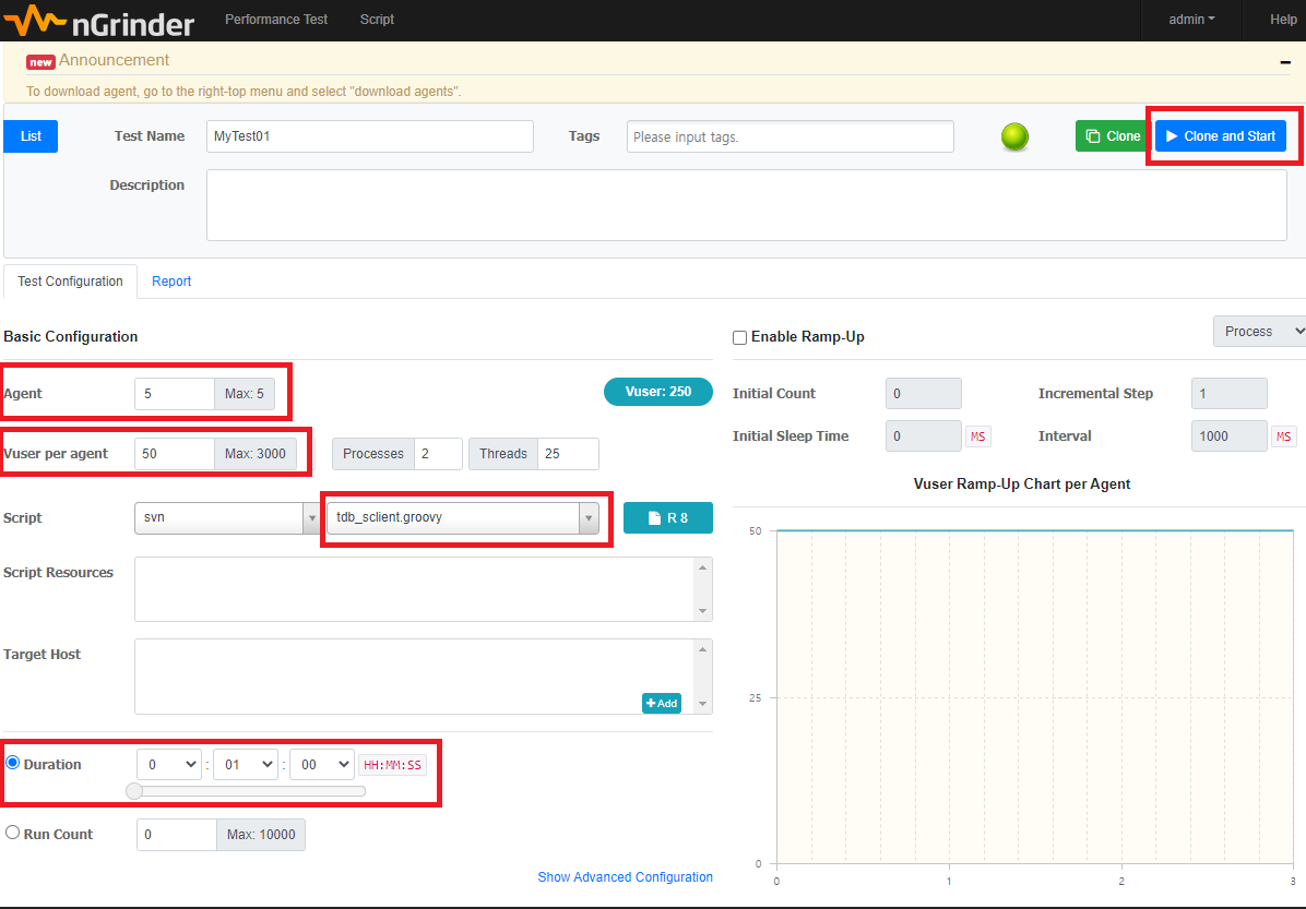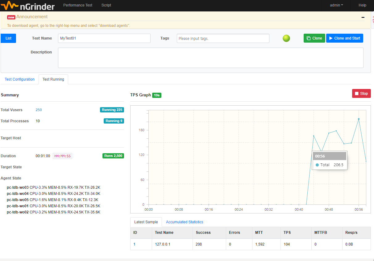 위와 같은 설정으로 총 5대의 에이전트에게 스크립트를 실행시켰고,