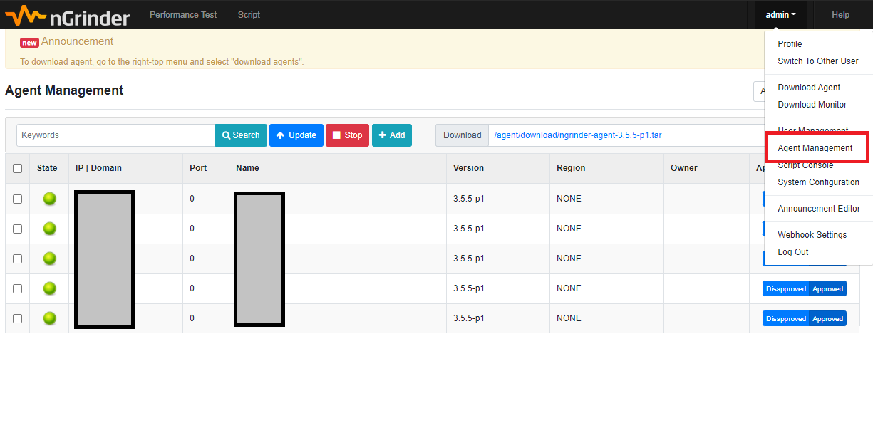 wget http://your_controller_ip/agent/download/ngrinder-agent-3.5.5-your_controller_ip.tar