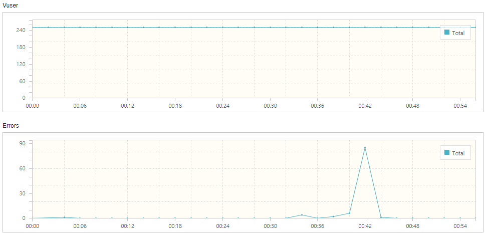 42초 쯤에 서버가 못버티고 에러를 많이 낸 부분을 확인할 수 있다.